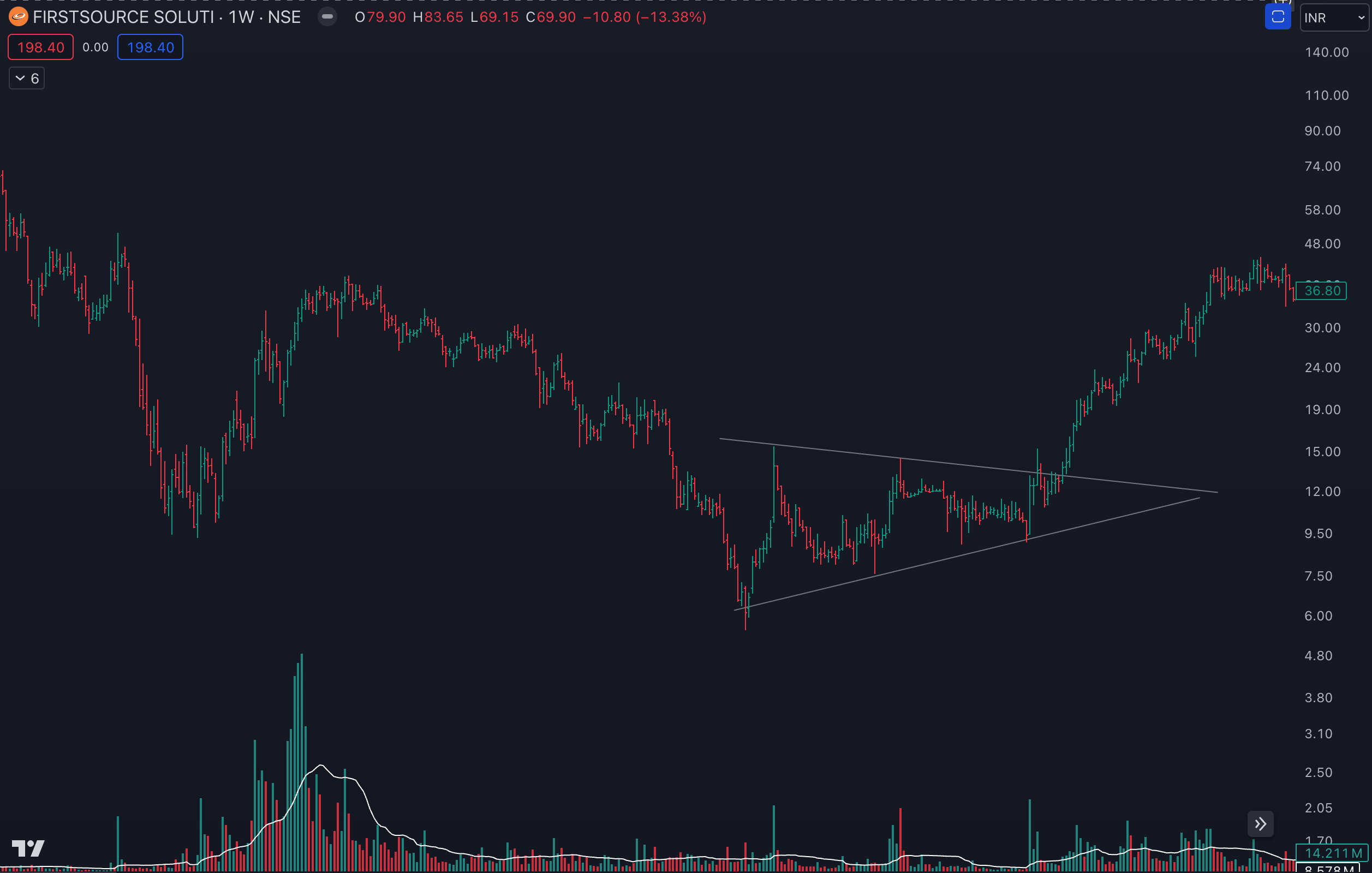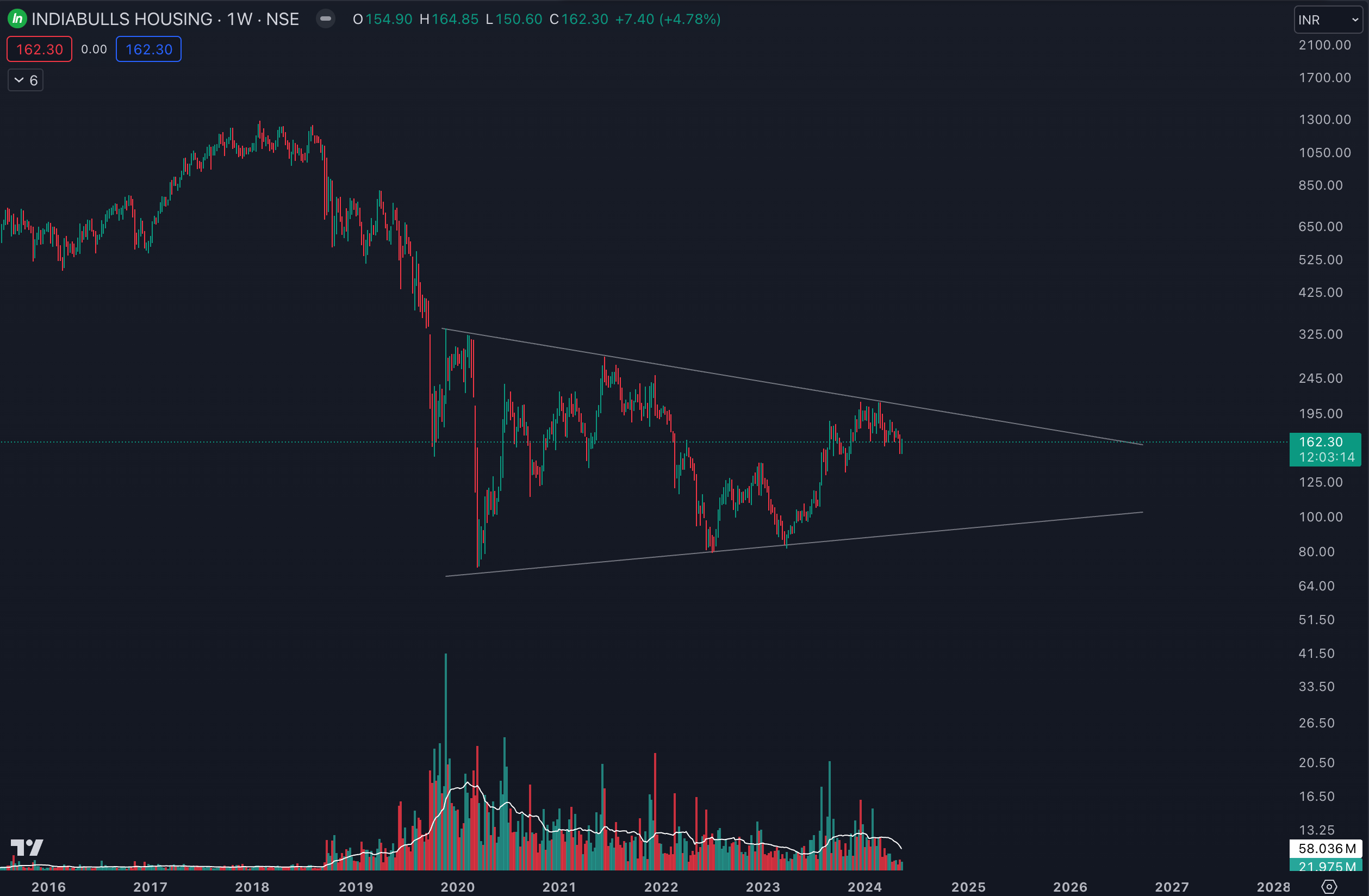 IBull Housing Finance: Possible Symmetrical Triangle Reversal Base