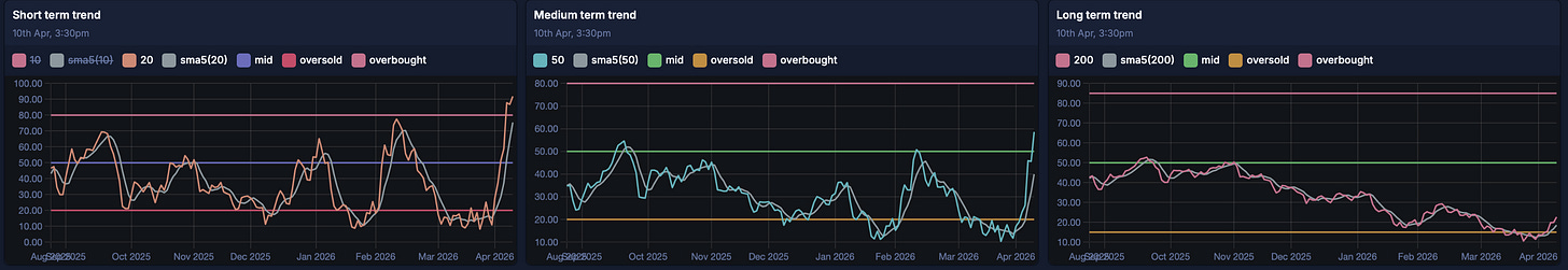 Short-term: “Percentage of stocks above 10/20-DMA”